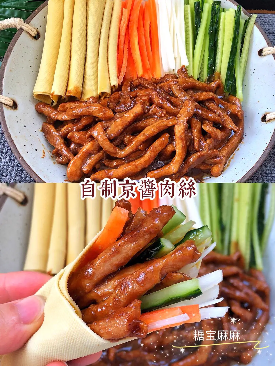 🍃今天和大家分享一道好吃到舔手指的京酱肉丝,酱汁浓郁,好吃下停不下来,小白也能轻松完成,一定不要错过哈~ (❗️豆皮也可以用饺子皮,刷一层油,再加一张饺子皮 重复叠起来擀大擀薄 水开上锅蒸5-6分钟,变透明鼓包即是熟了,一层一层撕开即可)